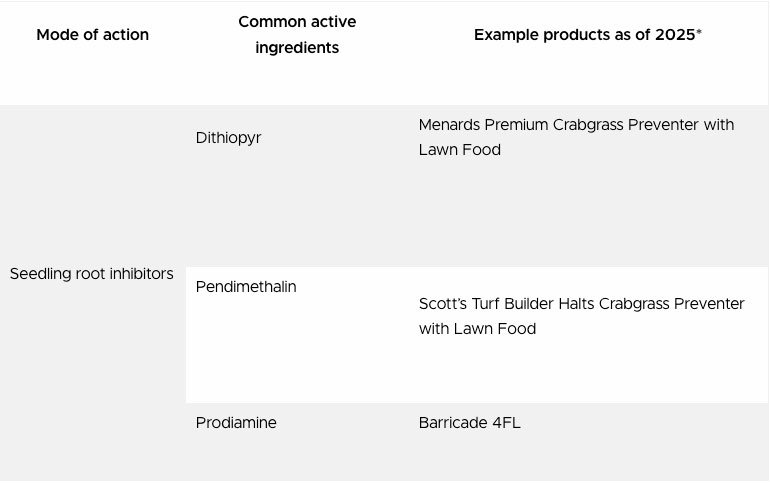 When it comes to choosing a product, there are several options out there. Those most commonly available to residential users all have active ingredients that target seedling root elongation and many come packaged with fertilizer.